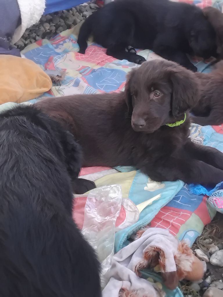 Cette race s'appelle le Flat Coated Retriever. Le troisième après le Labrador et le Golden de cette jolie famille du Retriever. Fin février 2015 nous avons franchi le pas et nous avons adopté une petite chienne, Jusant du Marais de La Sangsurière, le seul élevage Flat Coated recommandé par la SCC.